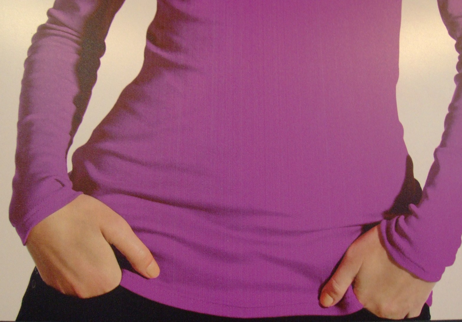 Looks to me as though they’ve just chopped her fingers off to resemble pockets.