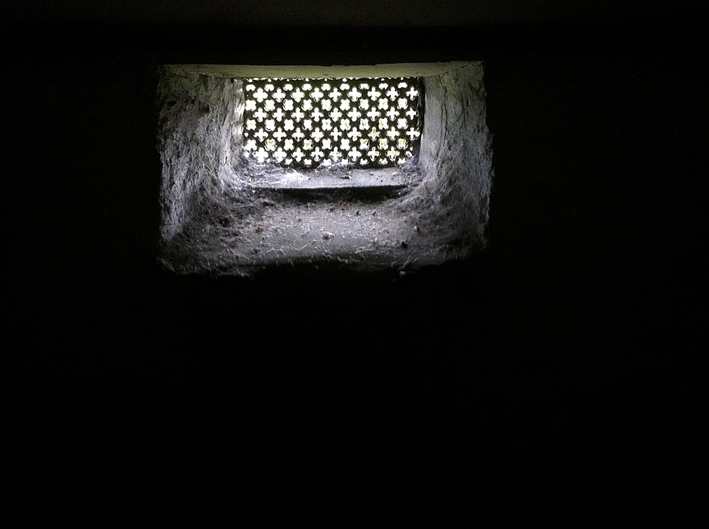 The cellar itself was about the same height as the top of my head, but there were pipes and joists hanging low – I had to stoop. The floor was made of the soil the building stood upon – it hadn’t been finished with concrete. The light bulb wasn’t working and the only source of light was a small grille. It was very atmospheric.