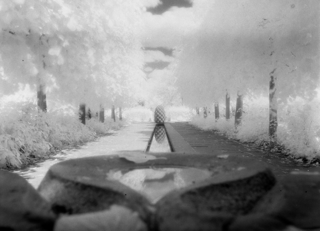However, that was Spring, this is Summer, and there is a lot more infrared radiation floating around. I thought the amount of IR would increase in proportion to visible light, so my 9 stop compensation would still work, but unfortunately that wasn’t true and this roll is grossly over-exposed. Perhaps 6 stops would have been better.