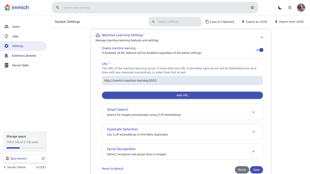 There are fewer settings for ML hardware acceleration. In fact, all we need to do is enable ML in Immich settings and it will automatically pick up any available GPU.
