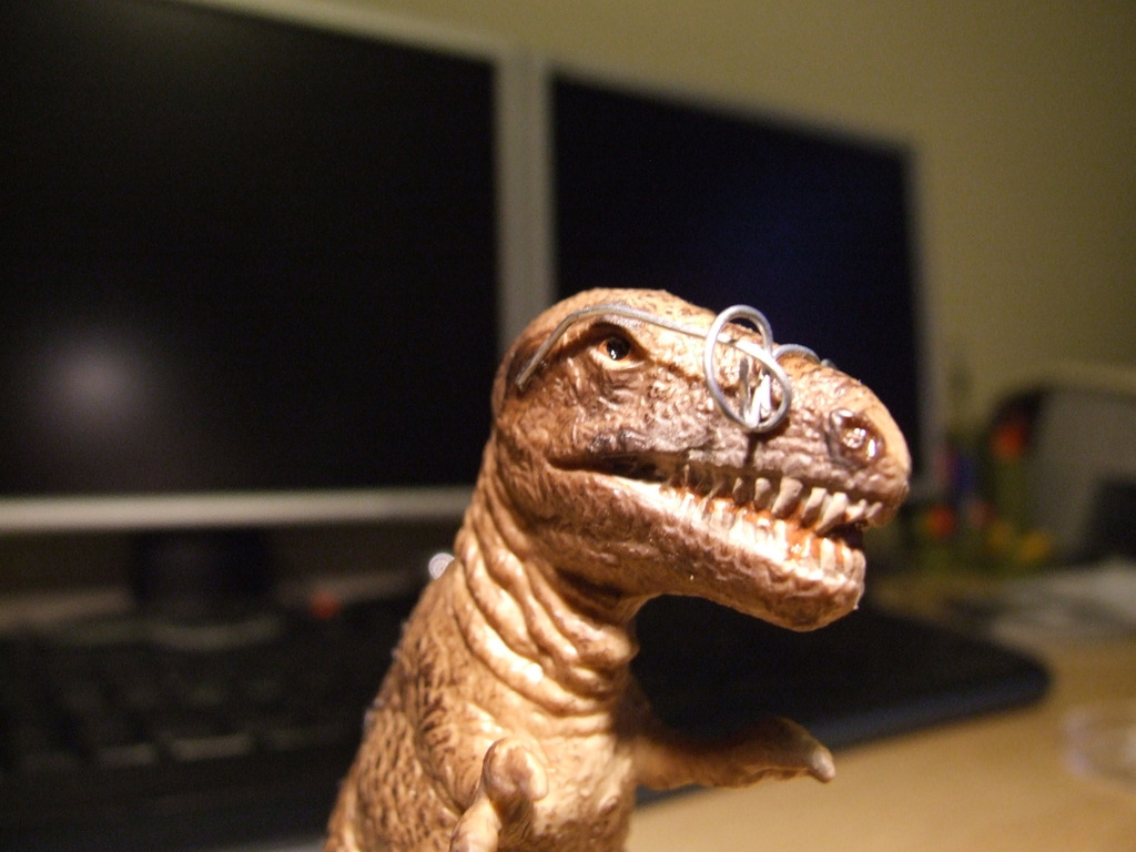 My friend Fabien made and sent me this dinosaur with reading glasses for my birthday 😀