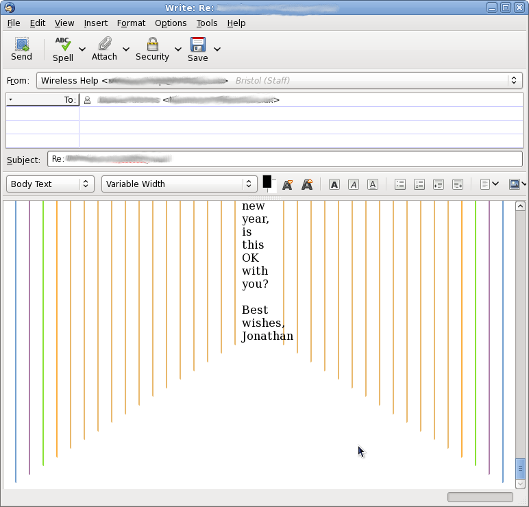 This is a rather old email thread (as you can see from the fact I mentioned “in the new year”, i.e. looking forwards to 2009. I consider it good practice to retain the relevant parts of the history when replying, but this conversation has gone on for so long that the formatting is getting aContinue reading “When an email thread gets too long”