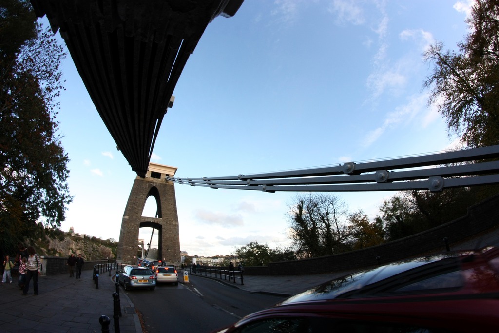 Today the Autumn sunlight was beautiful, especially in the early evening. I decided to head over to Clifton Suspension Bridge to try out my new Samyang fisheye lens. First I climbed up the cliff to where the Clifton Observatory is, to get these shots of the bridge as a whole. I’ve been here in theContinue reading “Clifton Suspension Bridge through a fisheye”