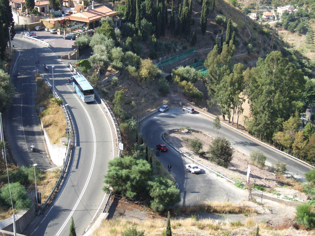 This steep road leads from the port of Messina to the town of Taormina, through the foothills of Mount Etna. The coach I travelled on passed along the roads you see here minutes before I took the photo.